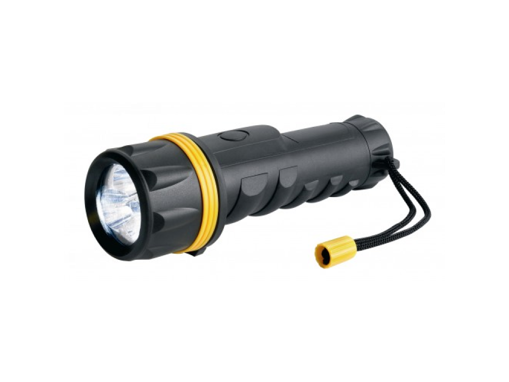 Прочный резиновый фонарь, идеально подходит для работы в тяжелых условиях. Яркие белые светодиоды дают свет, который ближе к естественному дневному свету, что делает его более заметным. Светодиоды имеют длительный срок службы более 100 000 часов. 2x D батареи в комплекте.