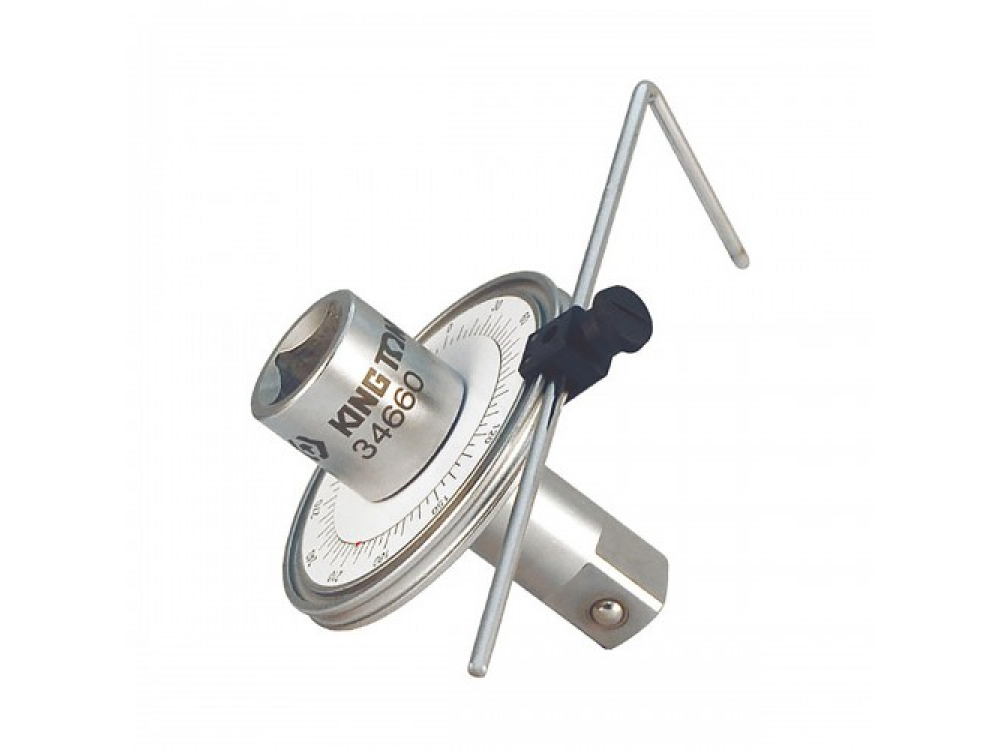 Угломер King Tony 34660 с посадочным квадратом 3/4 дюйма предназначен для контроля угла поворота динамометрического ключа, воротка или другого силового инструмента при затягивании крепежа, при монтаже которого необходимо соблюдать соответствующие технологические инструкции. Наиболее часто требование по контролю угла затяжки применяется при сборке двигателя – при затягивании болтов крепления крышки ГБЦ и прочих узлов. Технические характеристики: - присоединительный квадрат, дюймы – 1/2; - цена деления, ° – 2; - угол поворота, ° – 360; - Масса, г – 623.