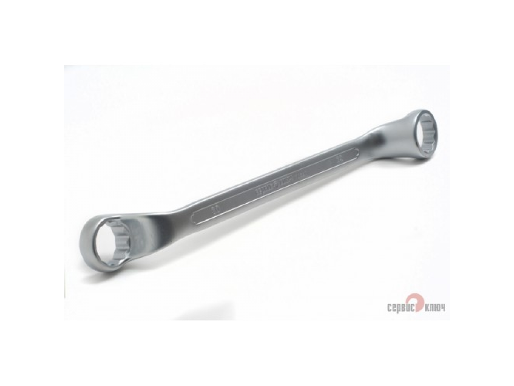 Двусторонний накидной ключ со смещением. Имеет на обоих концах 12-гранные накидные профили. Накидной профиль со смещением предоставляет более широкие возможности при работе в ограниченном пространстве. Изготовлен из высококачественной хромованадиевой (Crv) стали методом холодного штампа, тверность 40-45 HRC.
