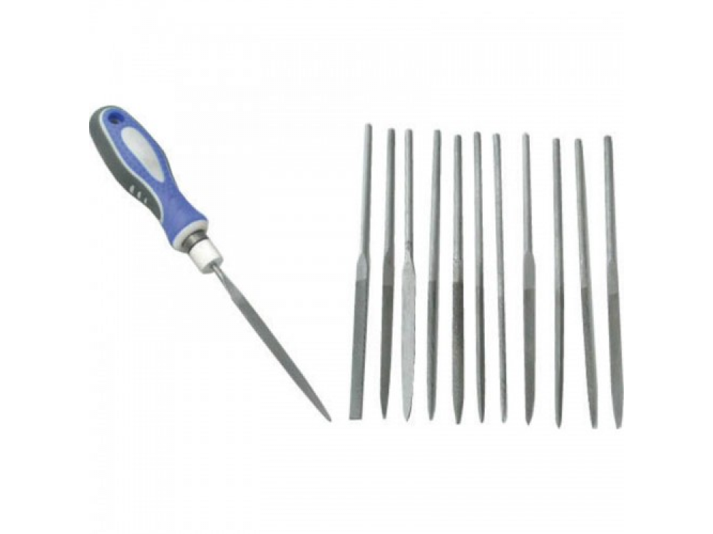 Набор надфилей, 13 пр. состоит: - Рукоятка с держателем надфилей и регулировками - Надфиль овального сечения - Надфиль круглый - Надфиль полукруглый - Надфиль плоский - Надфиль ножевидный - Надфиль треугольный - Надфиль квадратный - Надфиль трапецевидный - Надфиль плоский с закруглёнными краями - Надфиль ромбовидный - Надфиль конусный полукруглый - Надфиль плоский четырехсторонний - Нейлоновый чехол для хранения надфилей