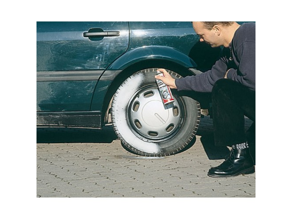 Не наносить на протекторы, тормозные диски и тормозные барабаны. Содержит силикон.