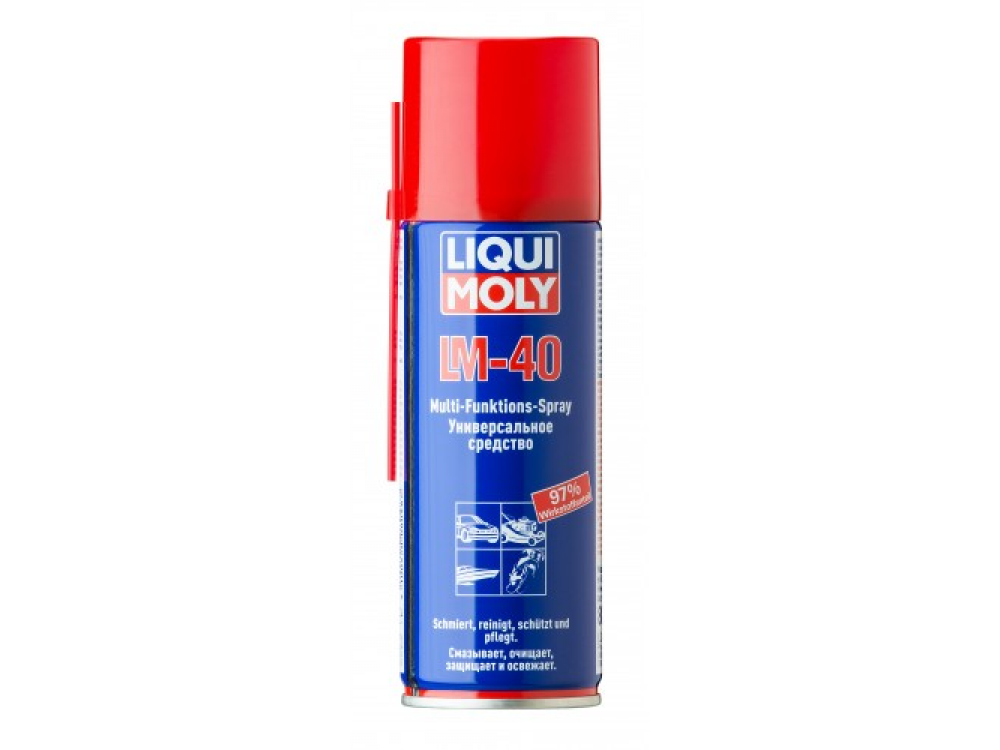 Универсальное средство, обладающее комплексным действием в отношении трущихся металлических деталей: очищает от загрязнений, коррозии и обеспечивает длительное смазывающее действие. Отлично подходит для смазывания петель дверей, резьбовых соединений, шарниров, замков, задвижек, тяг, автомобильных антенн и пр. Средство вытесняет воду из самых труднодоступных мест. Также LM 40 улучшает электрическую проводимость на контактах и устраняет грязь, следы масла и густой смазки.
