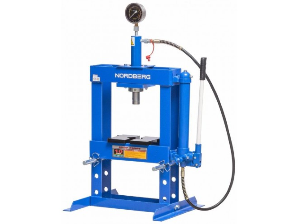 Настольный гидравлический пресс NORDBERG N3610 Надежная сварная конструкция рамы Регулируемый стол Две пластины-трапеции Гидравлический цилиндр 10 тонн. Гидравлический насос с ручным приводом. Автоматический возврат поршня. Предохранительный клапан для защиты от перегрузок. Глицеринозаполненый манометр 90 мм для контроля силы нагрузки. Ручное управление Поставляется в картонной коробке.