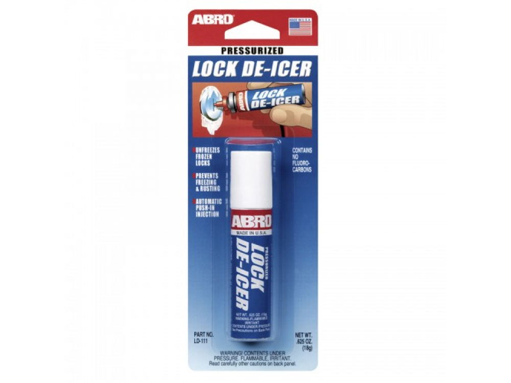 Размораживает замки в дверях машины, багажниках, бензобаках, чемоданах, висячие замки и дверные замки в доме. Используйте размораживатель и антиобледенитель замков ABRO регулярно, чтобы обеспечить исправную работу замка. При размораживании удаляет воду из замка и покрывает защитной смазкой. После применения удалите излишки этого раствора с поверхности.
