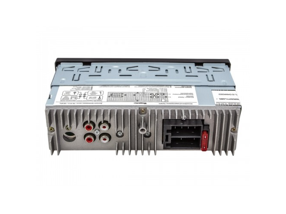 Автомобильный USB/SD ресивер. Выходная мощность: 4х51W Регулировка баланса (фронт, тыл), высоких, низких частот. Вход AUX (3,5 мм джек). 2 RCA (2 пары линейных выходов). Предустановки эквалайзера (классическая/ популярная музыка, рок). Цифровой радио-тюнер. Память на 18 FM радиостанций. Авто поиск, авто запоминание станций. USB/SD/MMC для воспроизведения Mp3, Flac. ID3 тэги (английский язык). Поиск по трекам и папкам. Несъемная панель. Синяя подсветка. Жидкокристаллический (VA) дисплей. ISO разъем (ISO коннектор в комплекте)