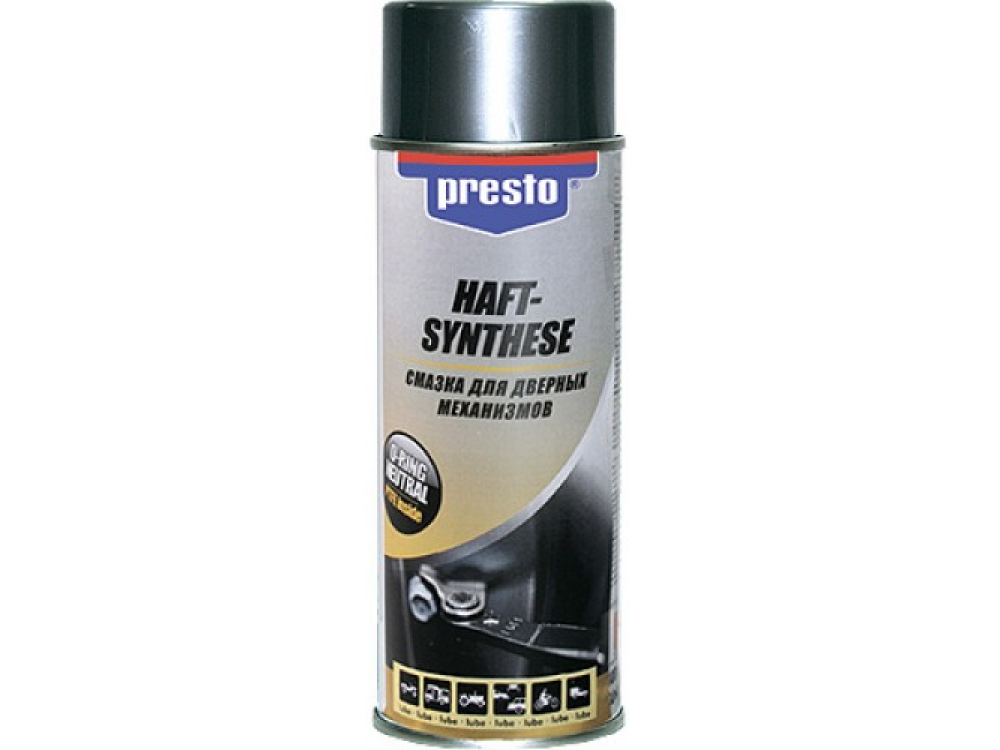 Прозрачный защитный смазочный материал для смазывания деталей из металла и пластика, различных механизмов (шарниры, петли, дверные механизмы). Нейтрален к уплотнительным кольцам, прокладкам. PRESTO Смазка для дверных механизмов предупреждает износ и заклинивание, устраняет скрип. Обладает отличной механической и температурной устойчивостью (от -30°С до +180°С). Препятствует образованию коррозии. PH-нейтральна, содержит тефлон.