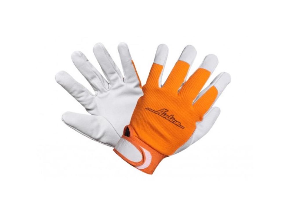 Ладонь и пальцы перчаток изготовлены из натуральной козьей кожи мягкой выделки, что придает им высокую чувствительность и повышенную комфортность при работе с мелкими деталями. Внешней сторона ладони выполнена из трикотажного полиэстера с тянущимися свойствами. Манжеты оснащены удобными застежками на липучке, предотвращающие спадание перчаток.