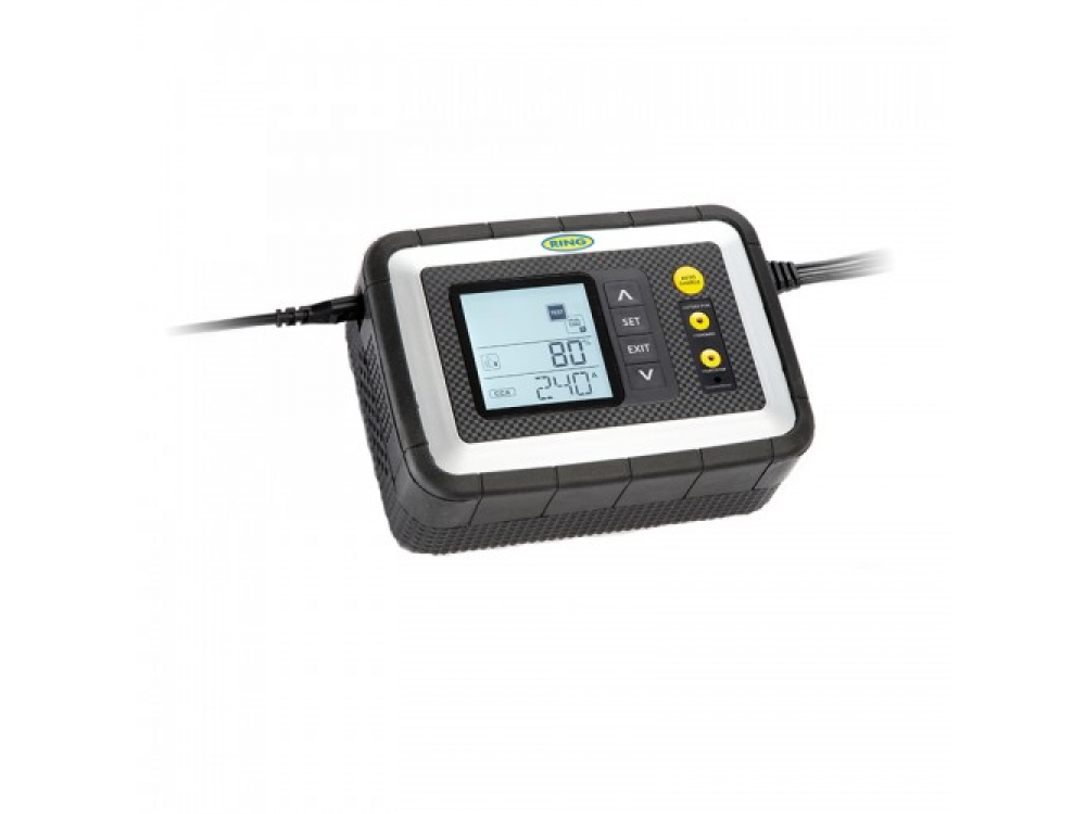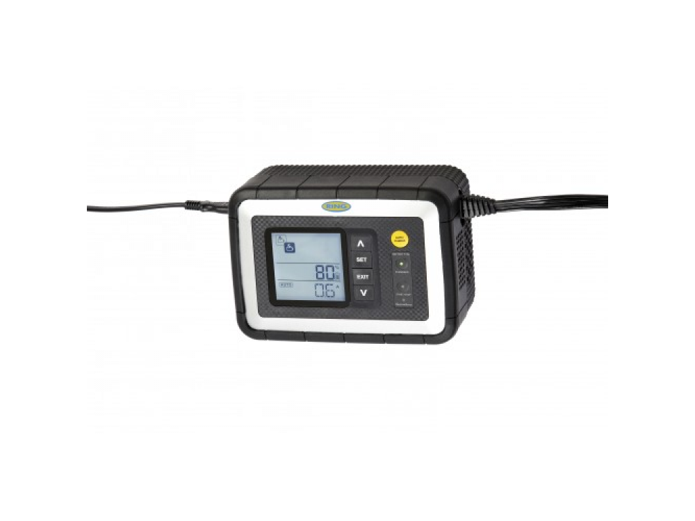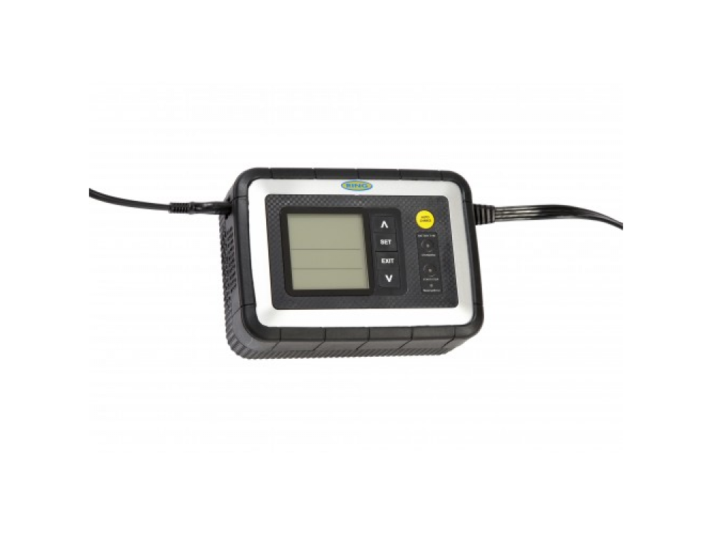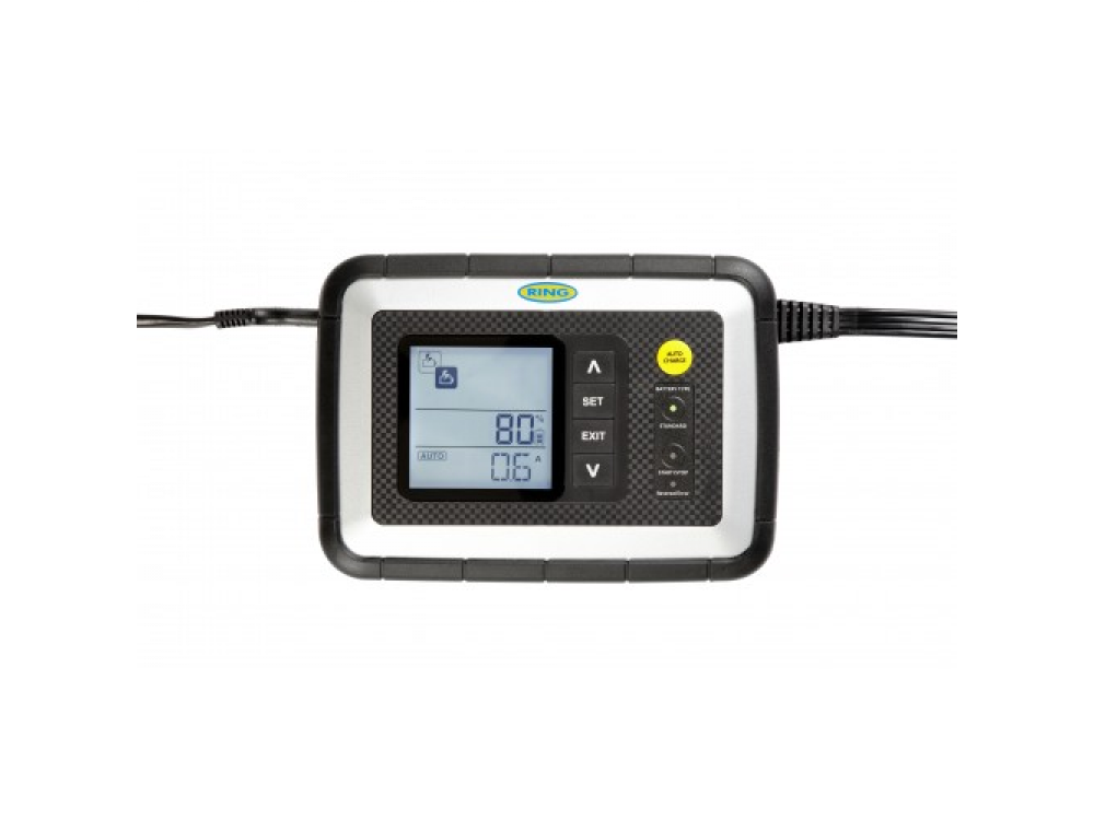 Интеллектуальное зарядное устройство Ring RESC608 — полностью автоматическое всепогодное зарядное устройство 8A. Светодиодные индикаторы показывают выбранный режим зарядки.